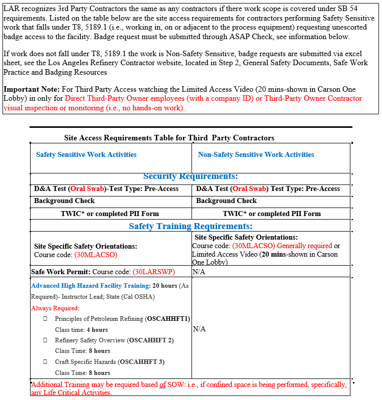 Los Angeles Refinery Contractor Site Access