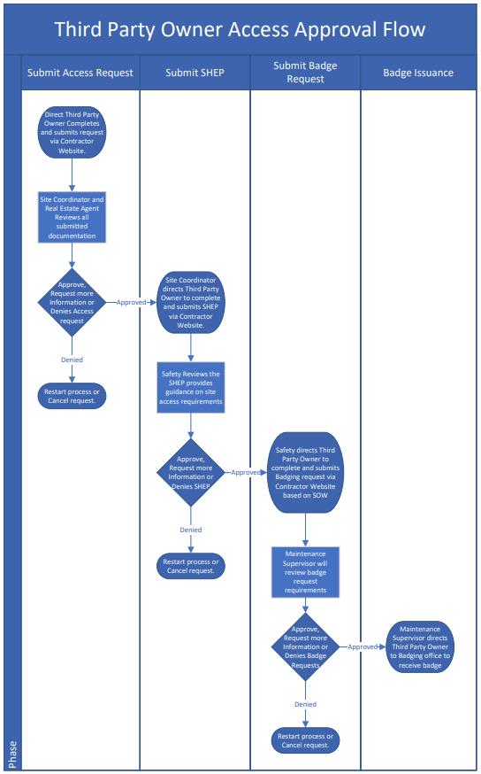 | Visitor (or Vendor) Site Access | Unescorted Badge Access | 3rd Party Access (ROW) |